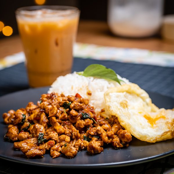 Ayam Pad Kra Pao & Teh Ais Thai