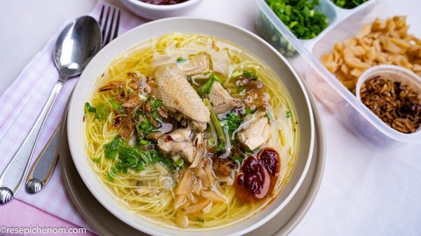 - 5Bolehlah hidang bihun yang dicelur, bersama sup ayam dan bahan-bahan hiasan, termasuklah sambal merah.