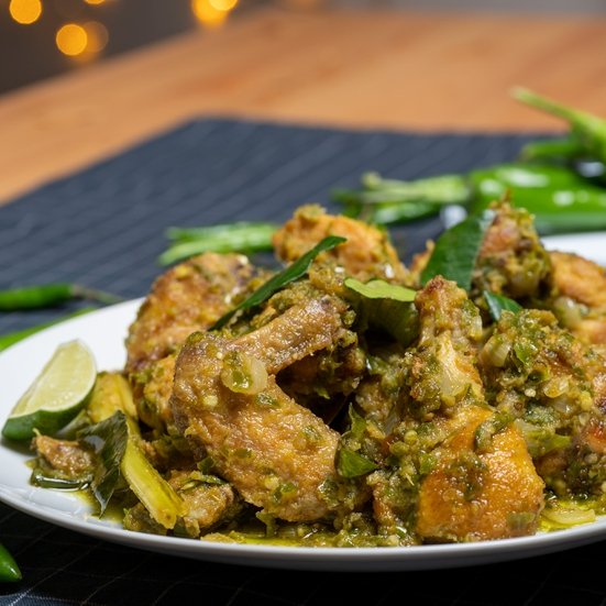 - 14Perahkan jus limau nipis kedalam masakan dan ayam sambal hijau siap untuk dihidang.